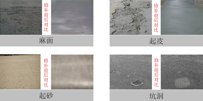 修補:(1)針對坑槽、麻面、起皮、空鼓的修補,將攪拌好的材料倒在作業面上,用抹子攤平即可,將抹子前進端略微抬起與地面成10°角,盡量少的次數將材料攤平,因為回板次數太多會出現粘板現象,若出現難以找平時,就靜止兩到三分鐘后再抹平。施工人員是先在小面積上預習一下,了解一下材料特性再進行大面積操作,不斷總結經驗和施工技巧。大面施工可以用刮杠刮平